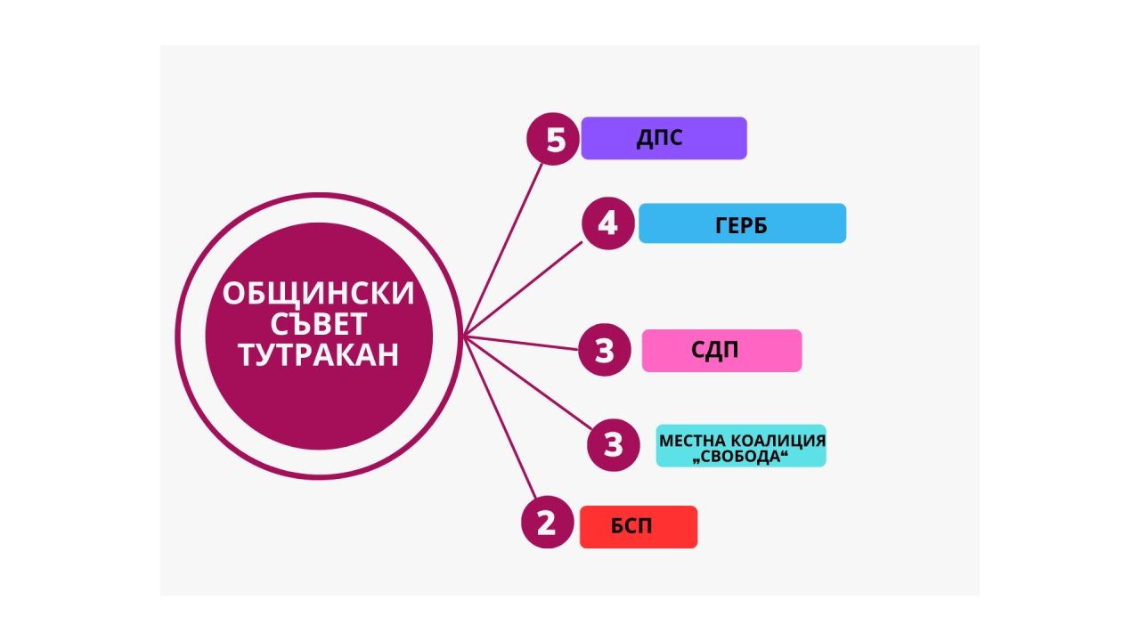 По решение на ОИК - Тутракан, мандатите в ОбС - Тутракан ще се разпределят между следните политически формации: