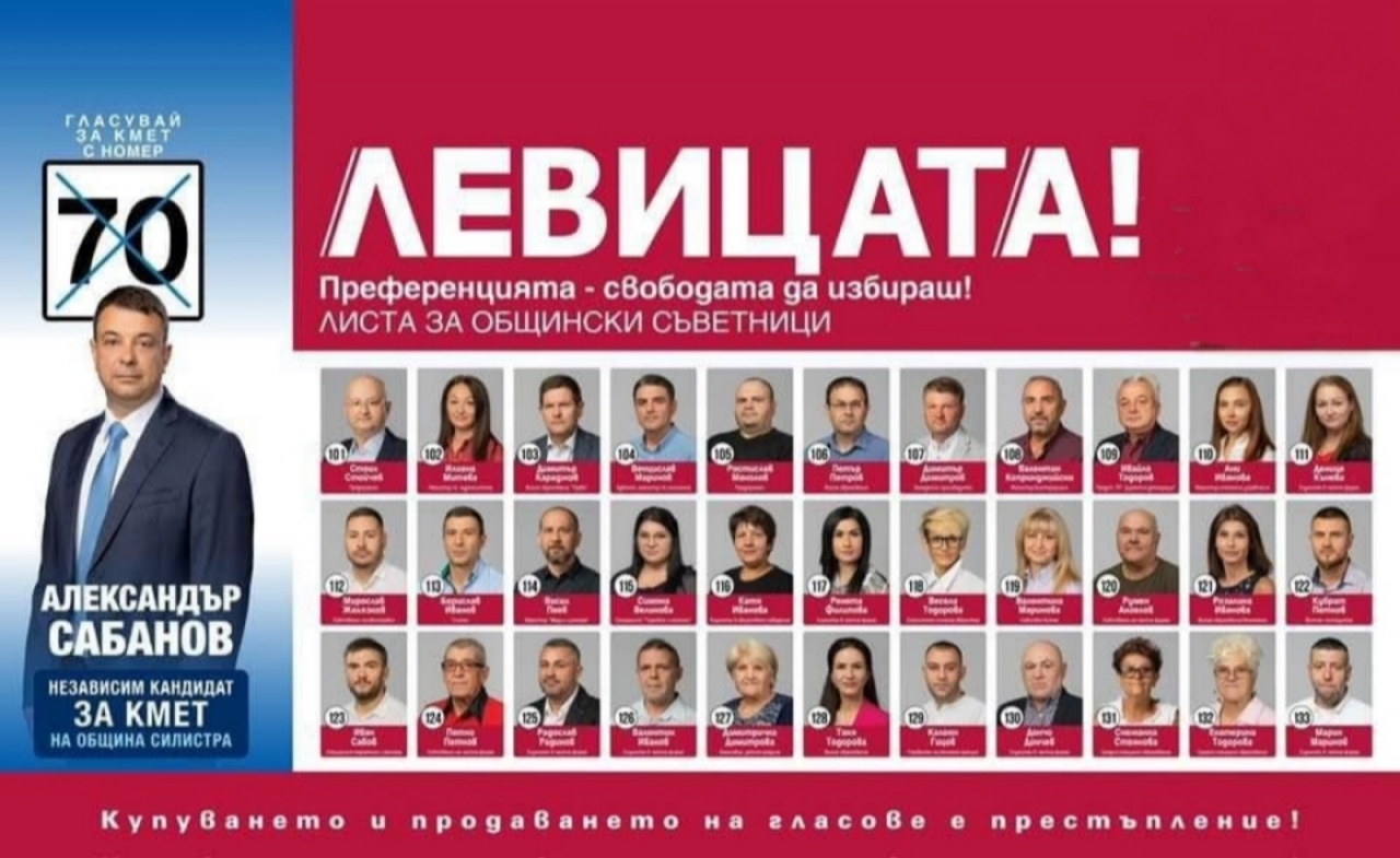 "Коалиция "ЛЕВИЦАТА!" призовава всички граждани на общината да гласуват с №70 за Александър Сабанов като кмет на Силистра на 5 ноември 2023 г., се казва в декларацията.