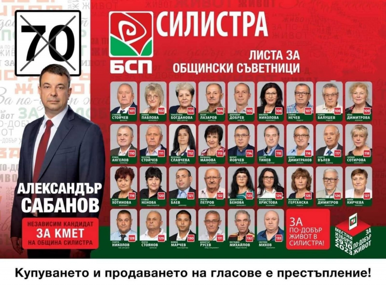 БСП-Силистра призова да се гласува за Александър Сабанов на балотажа на 5 ноември