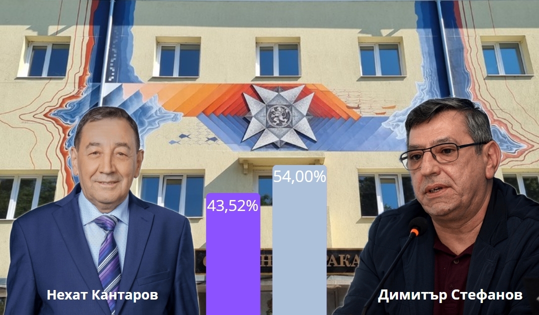При 43.33% преброени протоколи в Тутракан: Димитър Стефанов води с комфортна преднина 06 Ноември 2023 г. Политика 1070 При 43.33% преброени протоколи в Дулово от местната ОИК настоящия кмет Димитър Стефанов води с комфортна преднина на опонента си от ДПС Нехат Кантаров. Димитър Стефанов - 54,00% Нехат Кантаров - 43,52% Не подкрепям никога - 2,48 %