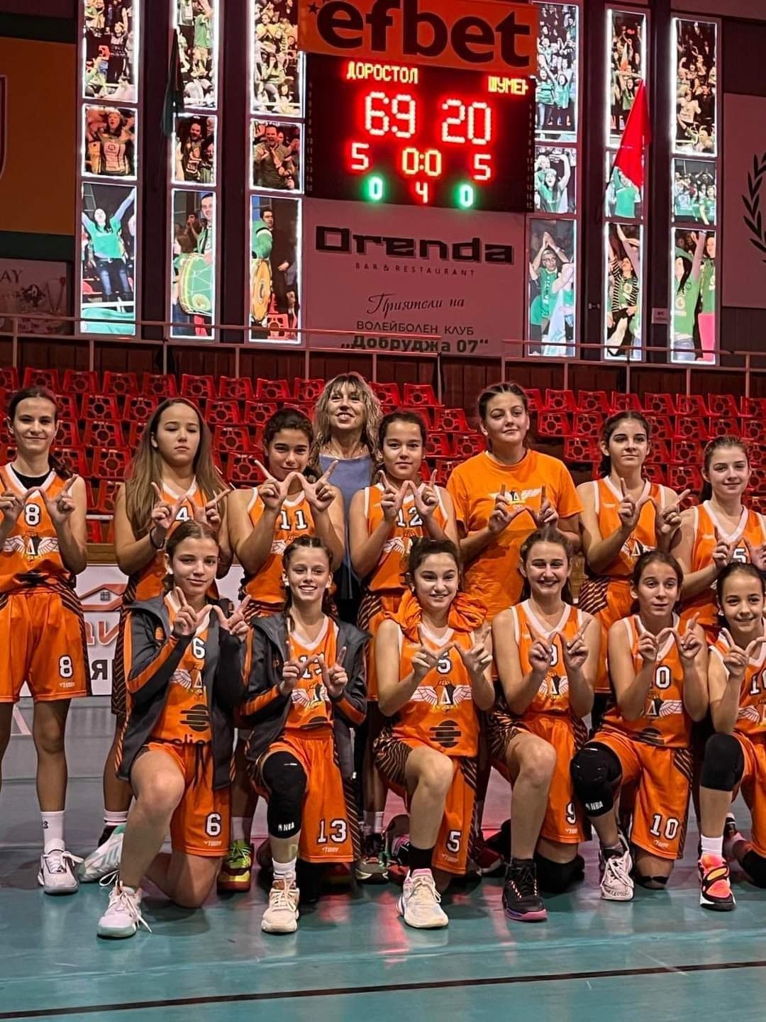 В първия си двубой силистренките направиха много силно представяне и надиграха Преслав с 95:9. Слабият противник не успя да се противопостави на младите баскетболистки на Доростол, които показаха много добра игра в атака и защита.