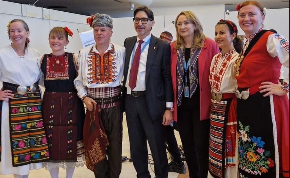Фолклористът Димитър Богданов - възпитаник на Ансамбъл "Добруджанче", който живее в Швейцария, участва в проява на Организацията на обединените нации.