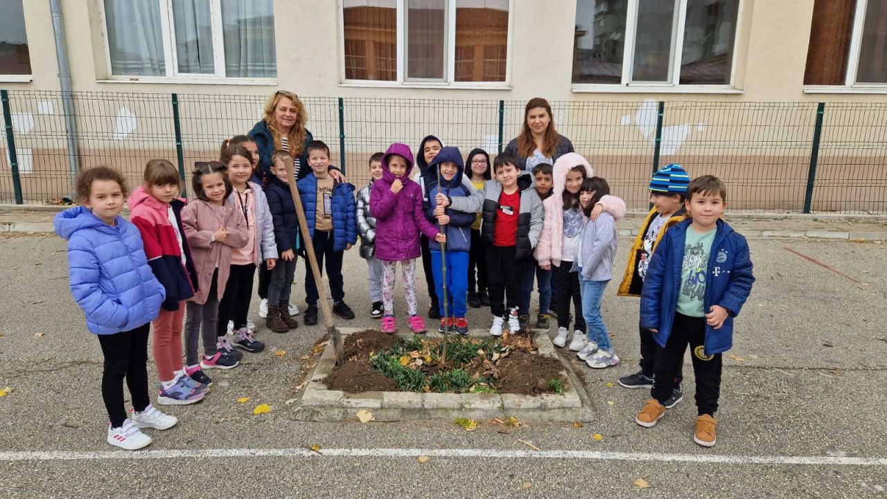Учениците от 1. В клас посадиха дръвче в двора на силистренско училището