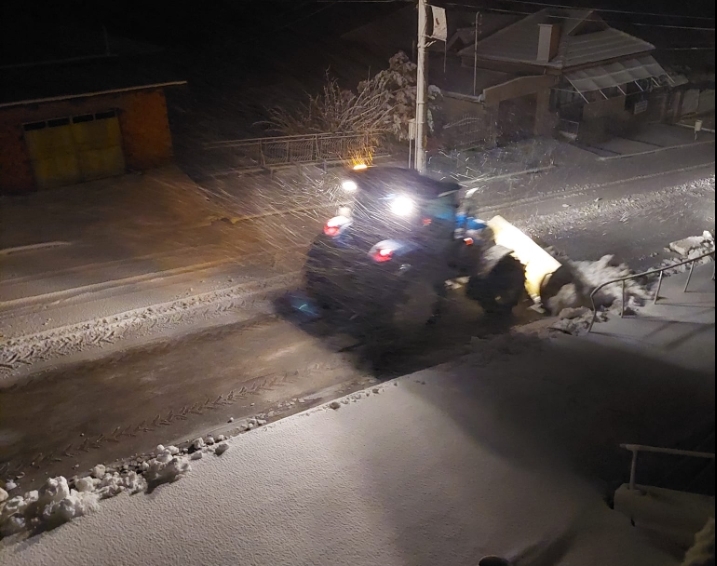 Снегопочистването продължава през целия ден, но е затруднено от тежките условия.