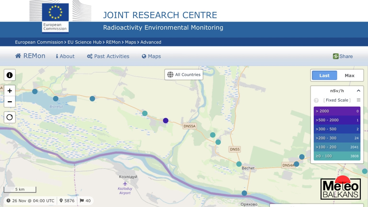 Тревожен сигнал от сайта за радиоактивен мониторинг на Европейската Комисия. Според него има близо две хиляди пъти повишение на радиационния фон на територията на Румъния в близост до Козлодуй, съобщава Meteo Balkans.