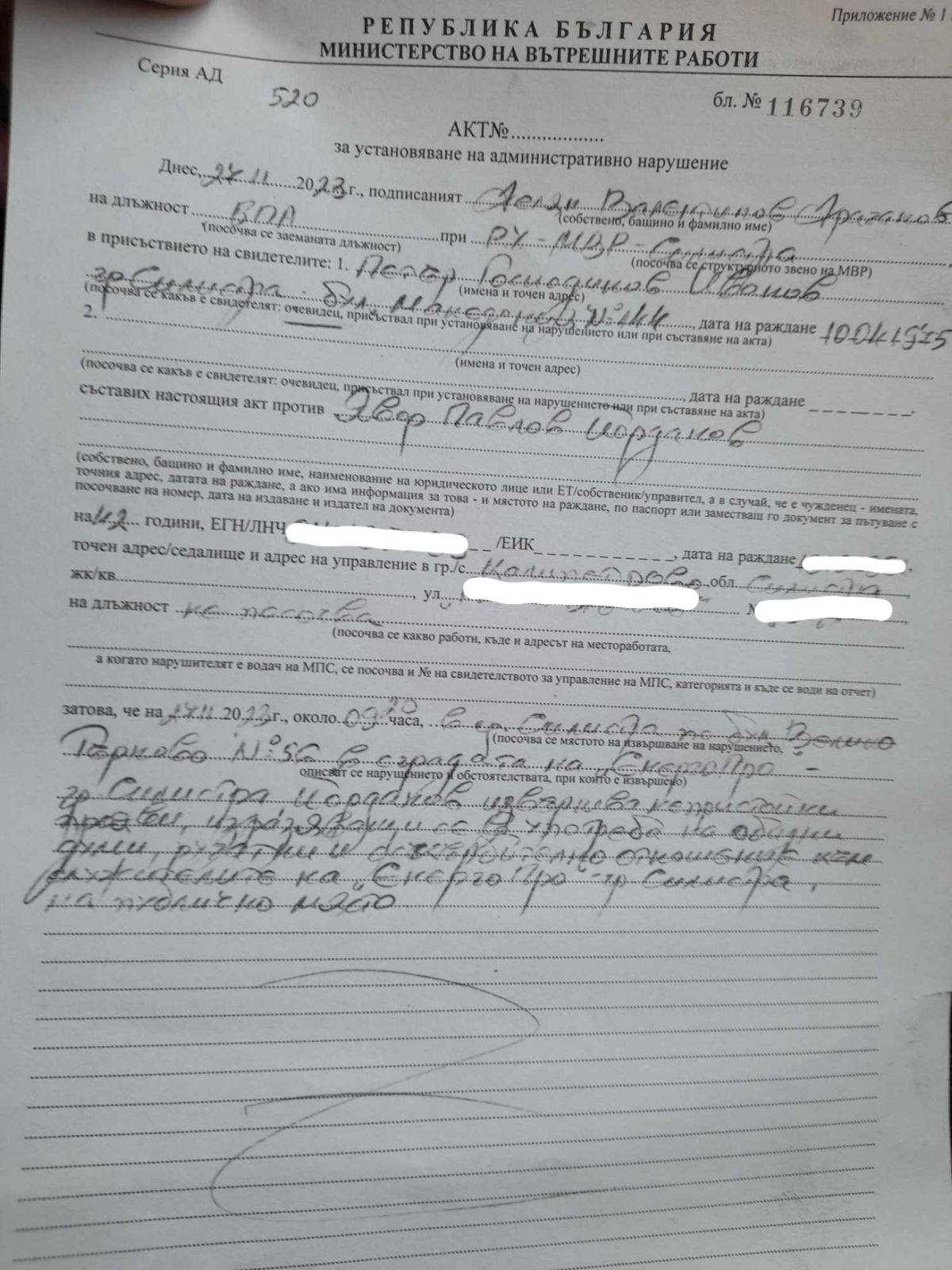 От КВОРУМ се свързахме с Явор, който ни разказа, че за постъпката му е съставен акт за дребно хулиганство. Той заяви, че няма нищо лично против служителите на дружеството, но иска да изрази своя протест и гражданска позиция за това, че не е нормално в 21 век, в една европейска държава при първия сняг хората да бъдат лишавани толкова дълго от нещо толкова важно - електрическата енергия.