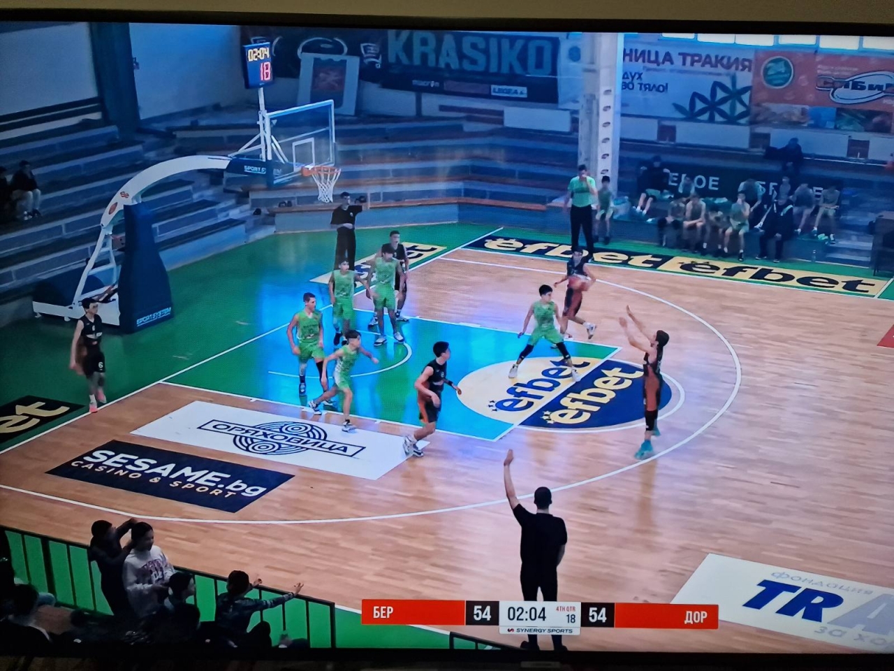 10 секунди преди края топката беше във владение на Берое, а резултата 58:56 за Доростол. Капитанът на Доростол Борис Димитров открадна топката и подпечата победата на силистренци за крайното 60:56.