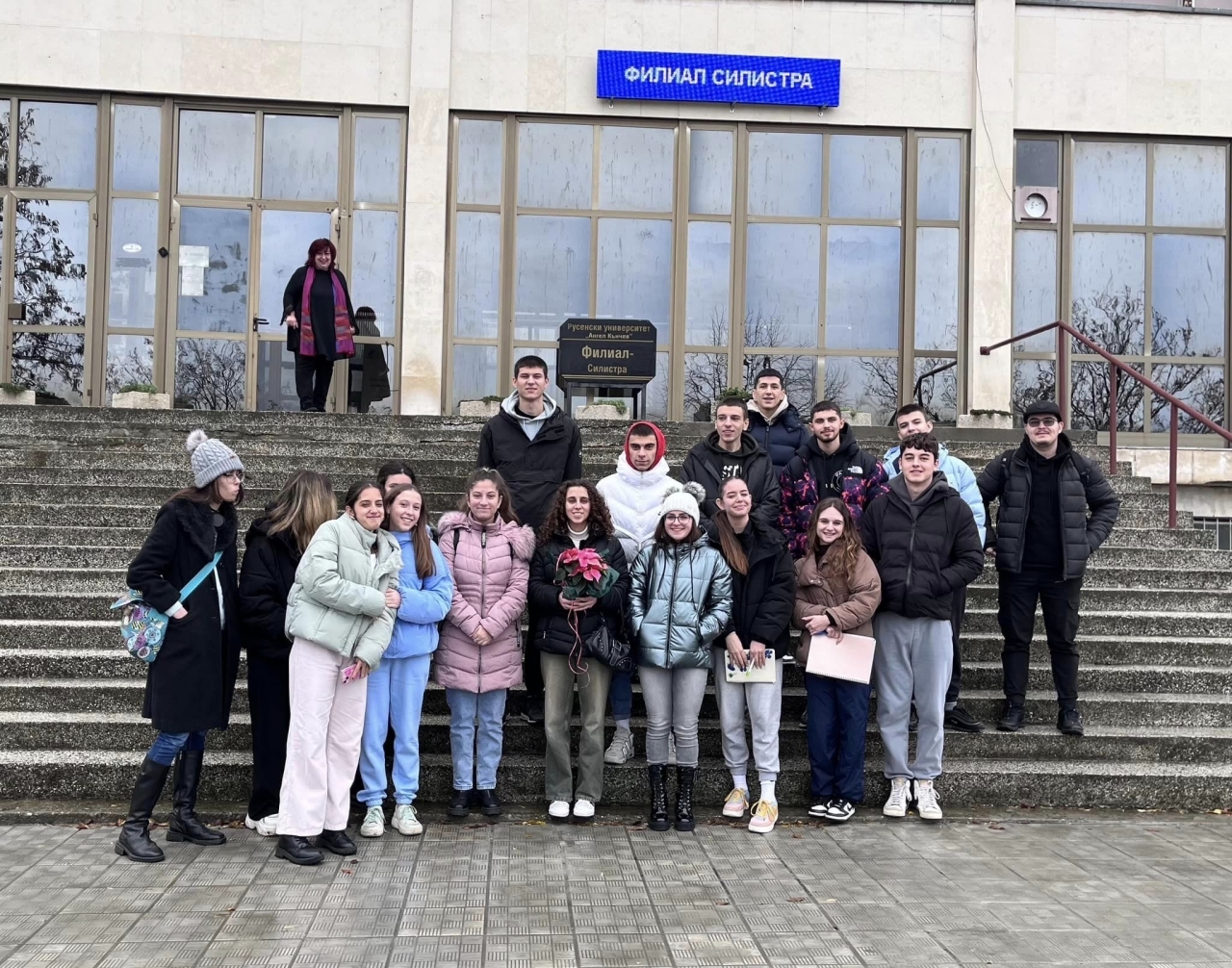 Ученици от 12.а клас на Езикова гимназия "Пейо Яворов" гостуваха на Русенския университет "Ангел Кънчев", Филиал Силистра, за съвместен урок по литература с доц. д-р Румяна Лебедова.