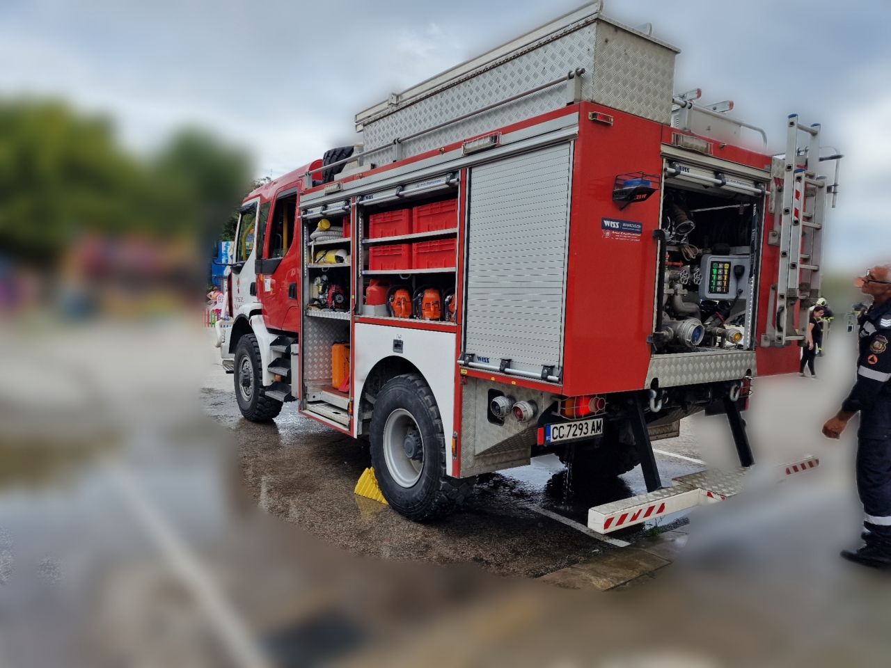 Пристигайки на адреса установили в помещението служител на охранителна фирма, който успял да загаси пожара, но вследствие на задимяването бил обгазен. Мъжът бил откаран с линейка в местната болница, прегледан и освободен.