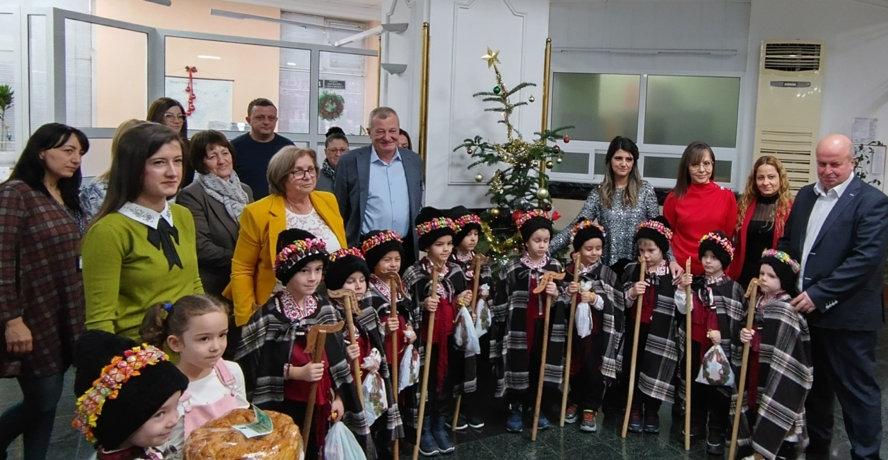 Деца от трета група на Детска градина "Радост" с учителки Пенка Цанкова и Александра Тончева, и ученици от трети "б" клас на Основно училище "Отец Паисий" с класен ръководител Дарина Панова гостуваха с коледарски програми в Областна администрация Силистра.