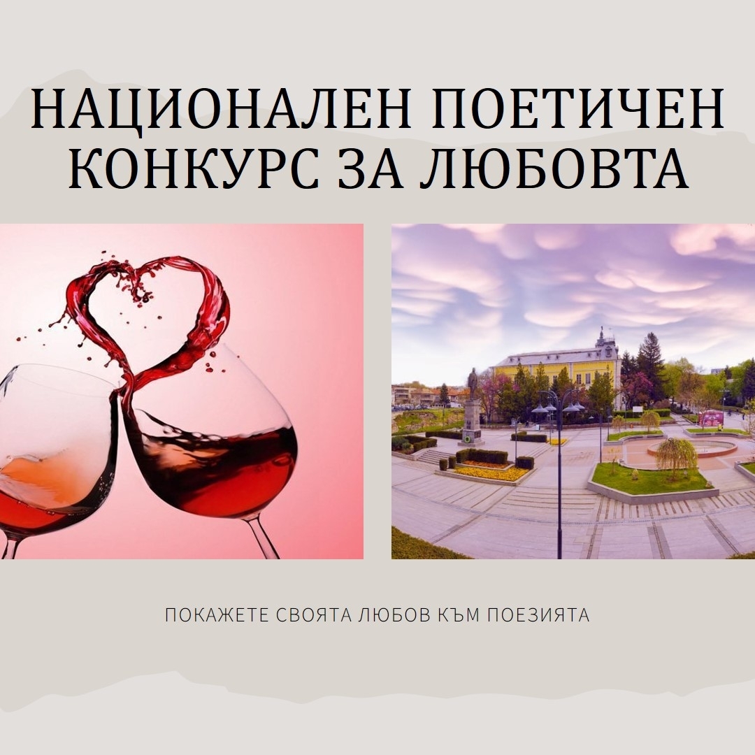 Община Силистра, литературното сдружение "Реката и приятели" и Регионална библиотека "Партений Павлович" обявяват 23-ти Национален поетичен конкурс "Любовта е пиянство или пиянство от любов".