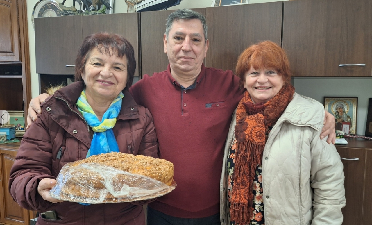 Със светена вода и питка в ръце, Анка Монева - аниматор в Архитектурен комплекс "Рибарска махала", и Марче Василева - самодейка към НЧ "Н.Й.Вапцаров", посетиха сградата на Община Тутракан.