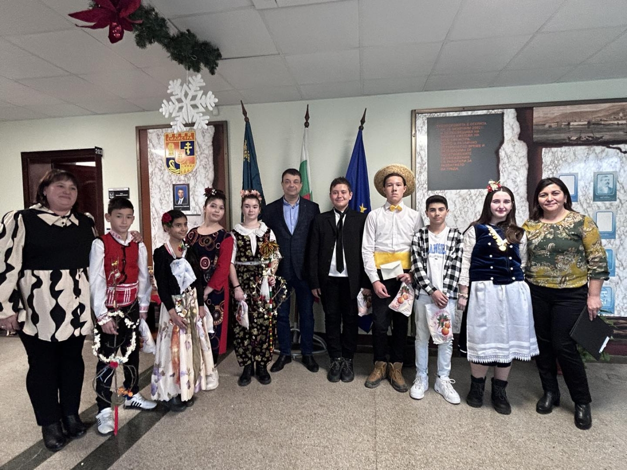 Днес, в навечерието на празника Банго Васил (ромската Нова година) , учениците от Обединено училище "Св. Климент Охридски", с. Проф. Иширково с ръководители г-жа Айгюл Бедри и г-жа Ергюл Ереджеб, поздравиха и сървакаха кмета на Община Силистра – Александър Сабанов.