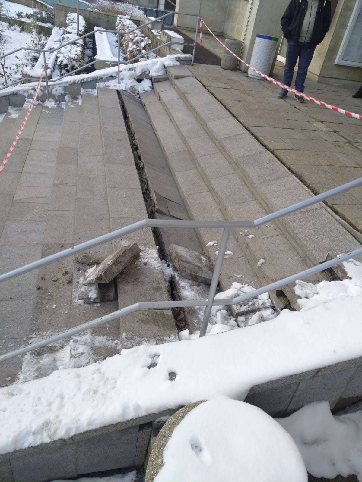 Част от входа на общинската администрация в Дулово е затворен след пропаднало стълбище.