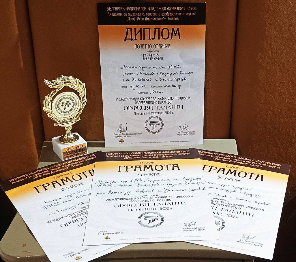 Ученици от фолклорната група на ПГМСС "Н.Вапцаров" с. Средище, община Кайнарджа, завършиха с почетно отличие "Сребърна лира" на второ място на Международния конкурс за музикално, танцово и изобразително изкуство в град Пловдив.