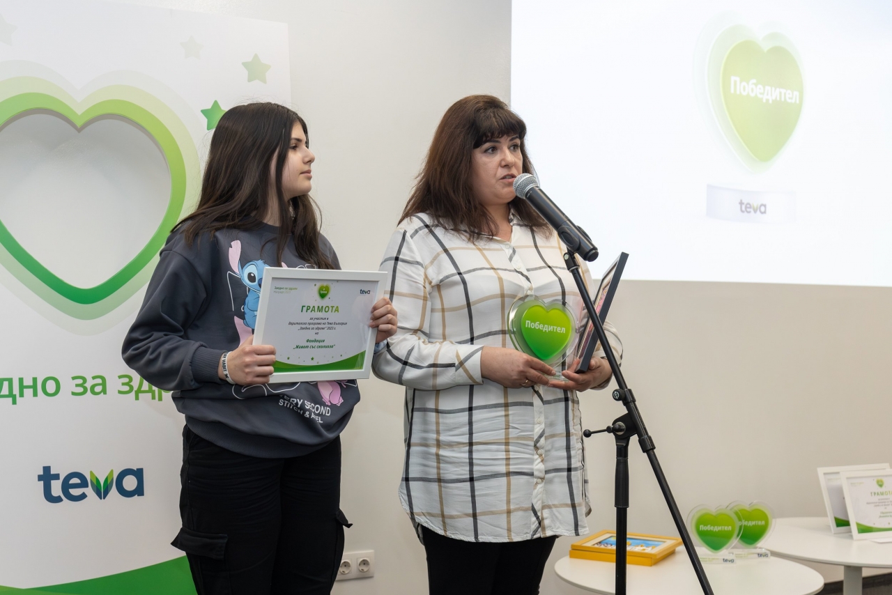 Събитието беше открито от Радослава Ганозова - асоцииран директор "Корпоративни комуникации и брандинг" на "Тева Фарма". Наградите на тазгодишните победители пък бяха връчени от победителите в миналогодишното издание, което беше и знак за приемственост между структурите. Наградата от името на фондация "Живот със сколиоза" приеха управителят на организацията Силвия Гордеева и нейната дъщеря Бояна, която е сред децата борещи се с коварното заболяване сколиоза.