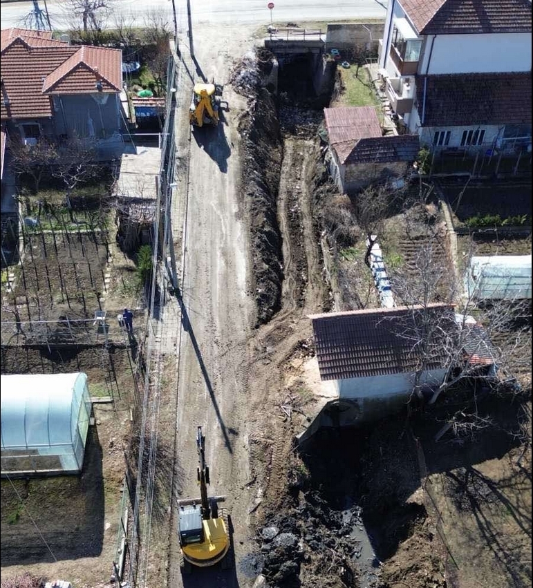 Строителните дейности по възстановяване на проводимостта на отводнителната канавка на улица "Чернозем" в село Айдемир продължават.