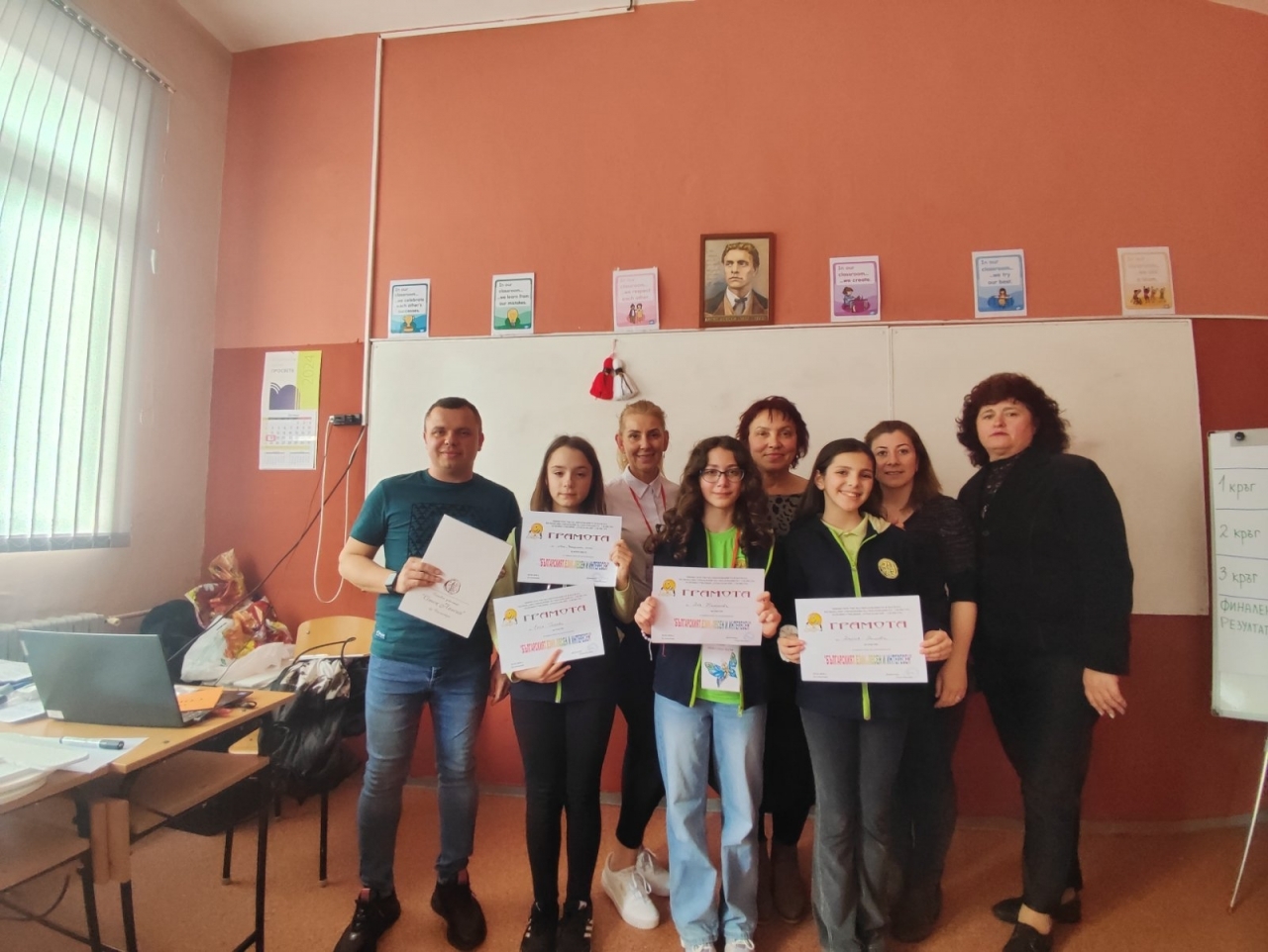 Учениците на госпожа Детелина Терзиева, главен учител по БЕЛ и класен ръководител на 5.б клас, показаха отлични знания и умения. Авторитетно жури, в състав: госпожа Ванушка Ангелова – старши учител по БЕЛ, господин Александър Господинов – старши учител по английски език и госпожа Нилген Шермин – учител в групата за ЦОУД в 5. клас, оцени тяхното представяне.