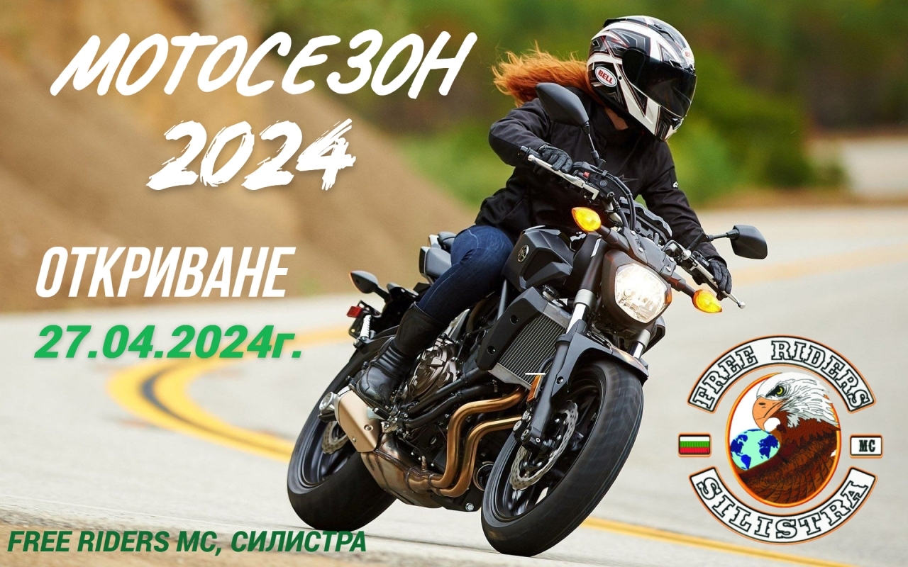 Мотоклуб "FREE RIDERS" МС кани всички свои членове, приятели и симпатизанти, както и всички жители и гости на гр. Силистра на "Официално откриване на мотосезон 2024г.", което ще се проведе на 27 април 2024 г.