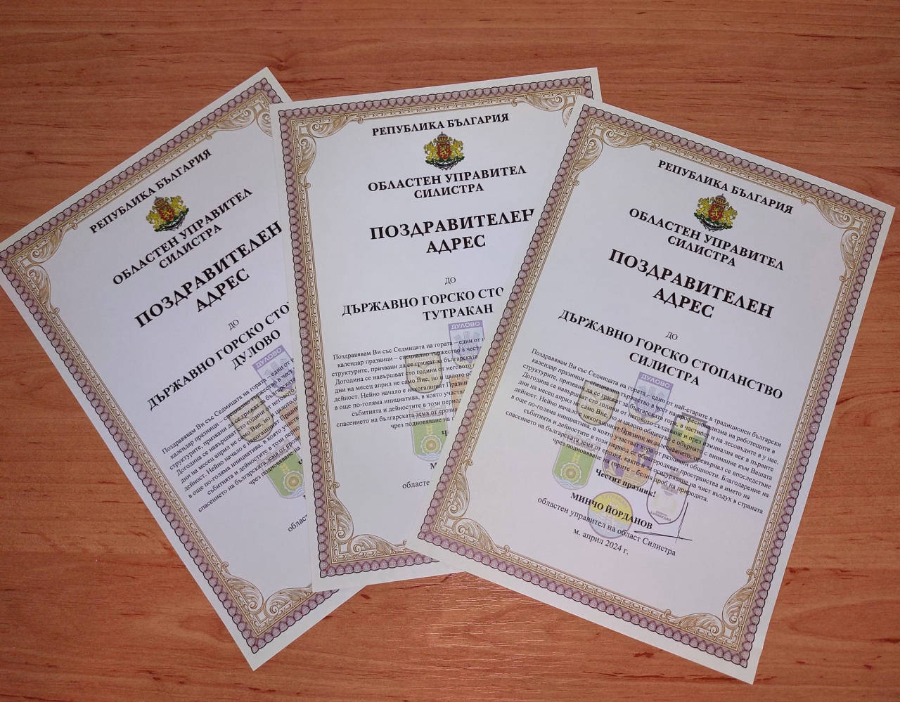 Поздравления от областния управител на област Силистра до ДГС в Силистра, Тутракан и Дулово. Началото на празника е в далечната 1925 г., но още в първата петилетка от възстановяването на българската държава след освобождението през 1878 г., тогавашното Министерство на народната просвета изпраща писмени указания до всички училища в страната за създаване на разсадници. През 1905 г. започва активна и целенасочена дейност, по овладяването на поройните реки и дерета, и залесяването на милионите декари, оголени и ерозирали терени, съществуващи във всяко населено място.