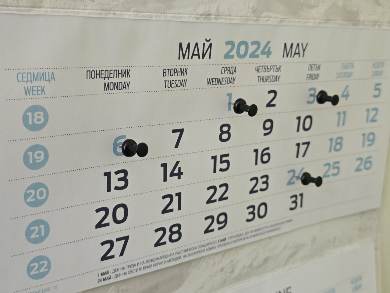 През месец май официални празници са също 1-ви май и 24-ти май.