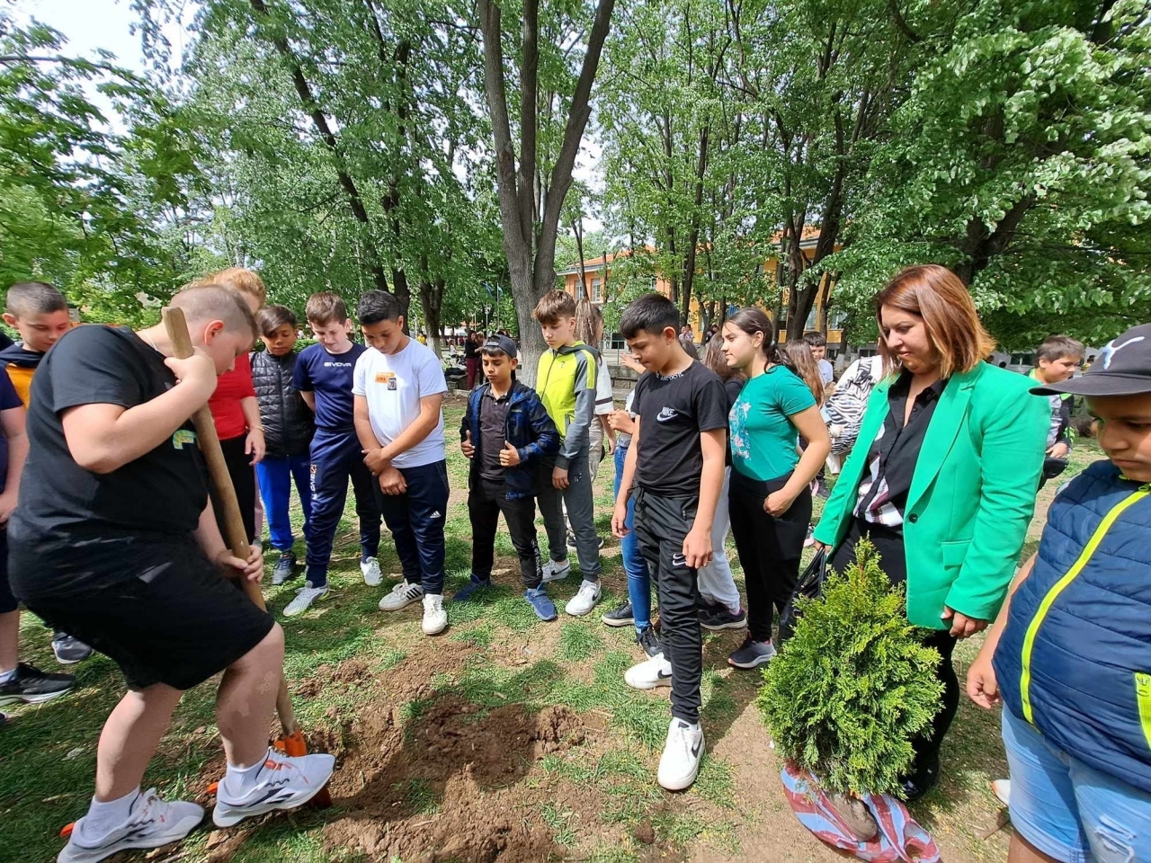 Инициативата е част от ежегодните дейности на училището, посветени на опазването на околната среда. С ентусиазъм и желание за по-чиста планета, учениците изкопаха дупка, засадиха фиданката и я поляха.