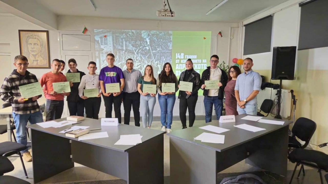 Вчера, 24 април, в актова зала "Стоян Стоев" на СУ "Васил Левски" се проведе вълнуваща историческа викторина, посветена на 148 години от Априлското въстание. В нея се включиха ученици от 10 клас – хуманитарен профил, които показаха завидно познаване на героите и събитията от този славен период на българската история.