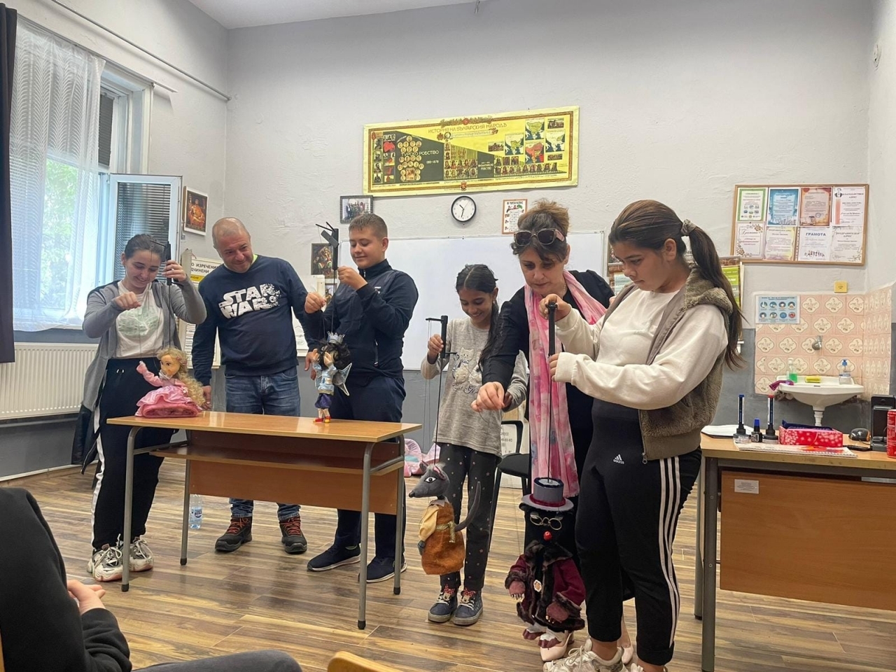 Посещението на Златина Станева и Станислав Георгиев е финал на седмица, посветена на инициативата "Походът на книгата". Чрез интересен и забавен спектакъл, в който се ползваха кукли на конци, те запознаха децата с приказните герои на Андерсен.