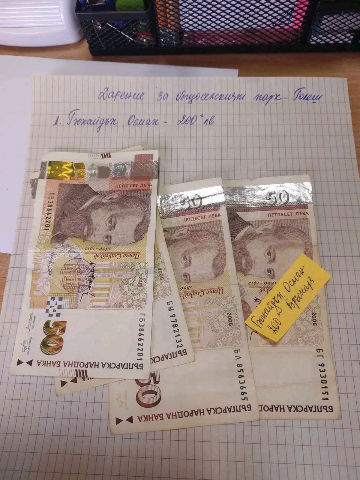 Получено е първото дарение за общоселският парк, в размер на 200 лева.