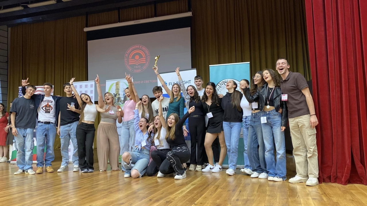 Отборът на ЕГ "П. Яворов" грабна купата за най-добър отбор за страната за 2023-2024г. и бе официално отличен като отборът получил най-много награди от полуфинали, финали и дебати по време на всички турнири. А с наградата за най-добър американски треньор бе удостоена Хана Гилсън - нашият помощник - учител по програма "Фулбрайт – Фондация Америка за България"! Благодарим ти, Хана – за отдадеността, подкрепата, вдъхновението!