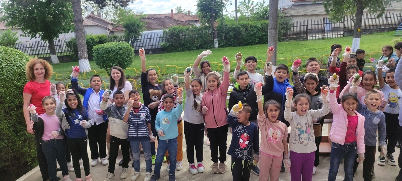 Децата искрено се забавляваха докато боядисваха яйцата и ги правеха от шарени по-шарени. Бяха впечатлени от опитите, с които по интересен начин се надуват балони и се проявиха като истински състезатели в щафетните игри. Накрая всички си похапнаха варени и шоколадови яйца, козунак и натурален сок, а като подаръци получиха още материали и великденски фигурки за оцветяване.