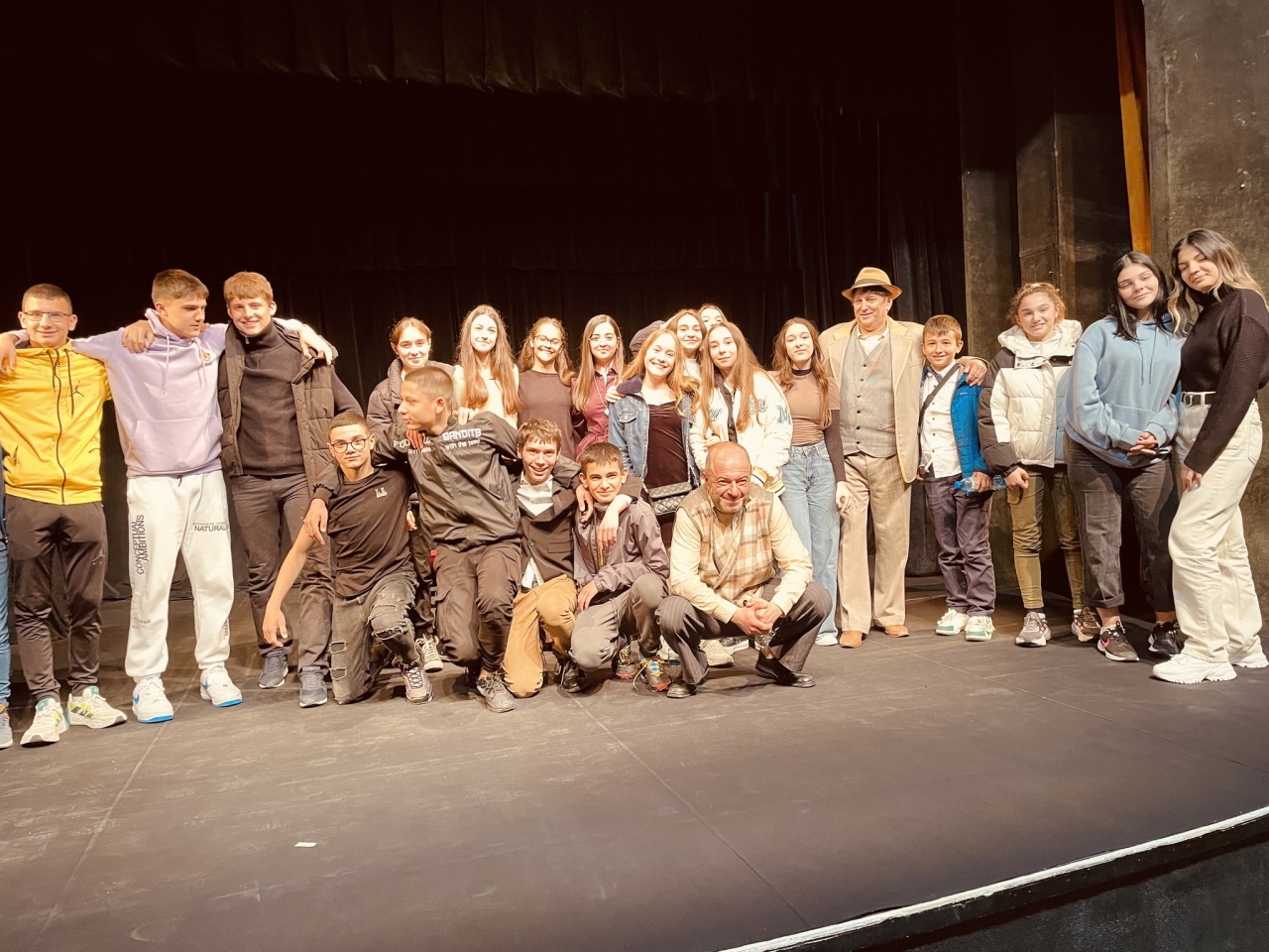 На снимките са запечатани част от учениците, които пожелаха да се доближат до актьорите след представлението.