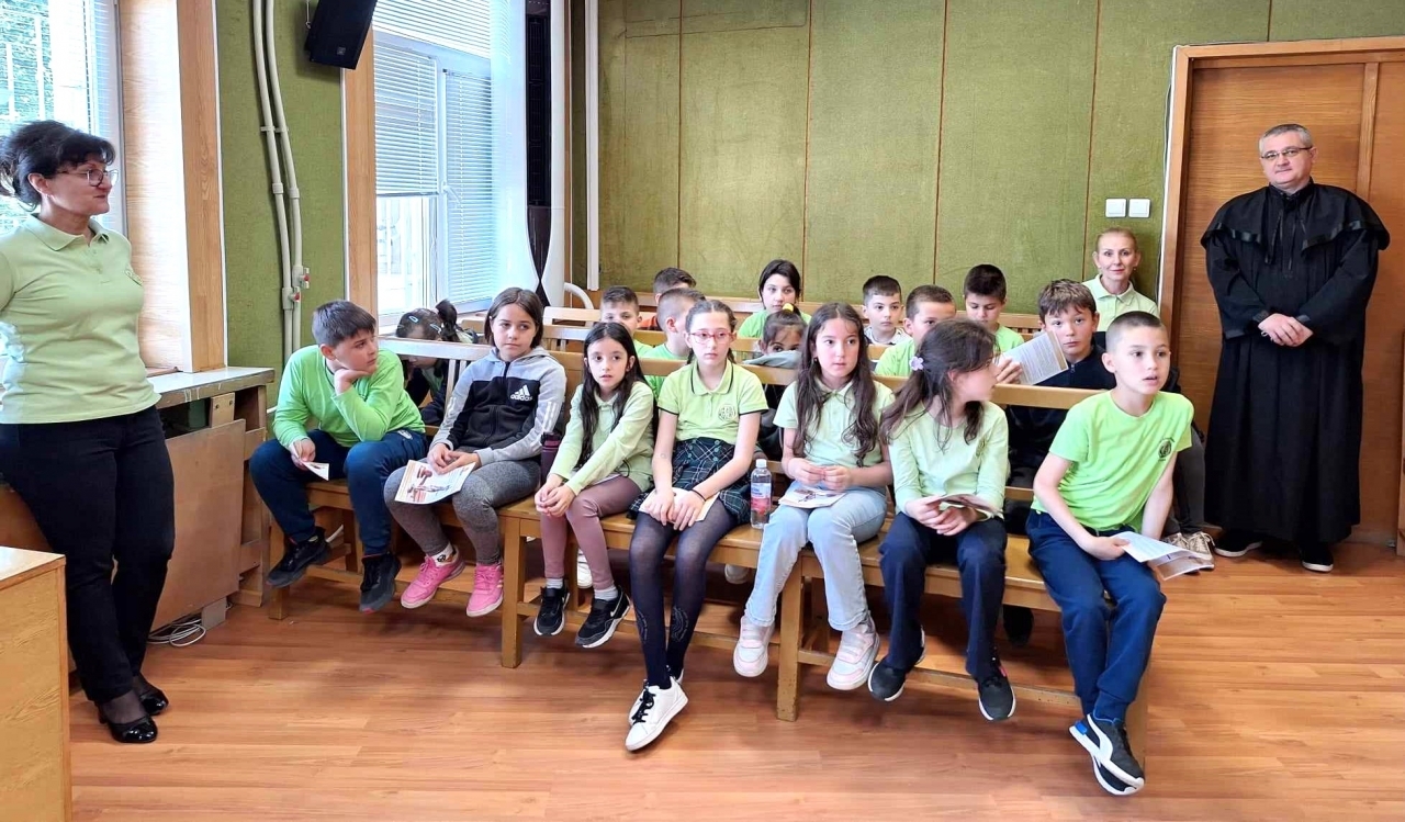 Председателят на съда, съдия Мирослав Христов приветства учениците и заедно със съдия Жанет Борова въведе децата в света на правосъдието. Разяснени бяха функциите на съдия, прокурор, адвокат, съдебни заседатели, вещи лица, съдебен секретар. Децата с интерес научиха разликата между гражданските и наказателните дела.