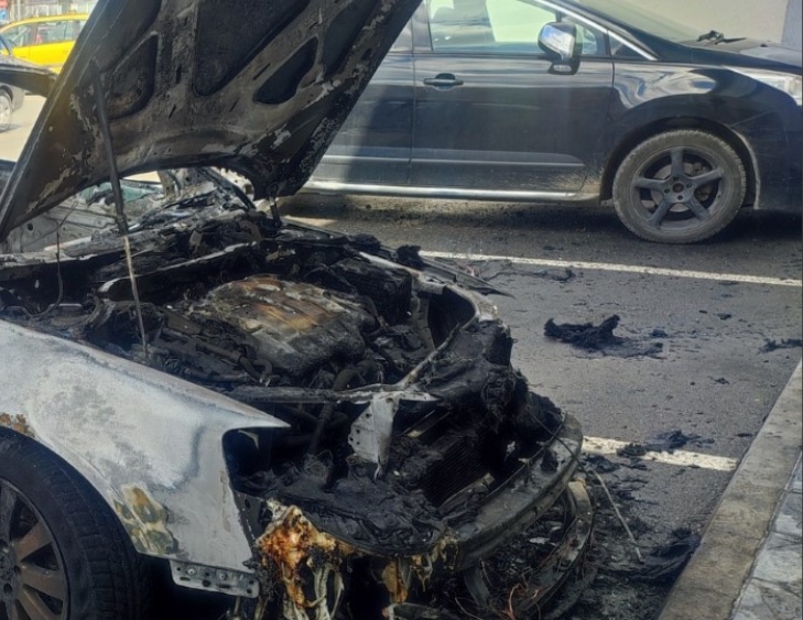 В резултат на пожара са унищожени двигателят и предното стъкло на автомобила.