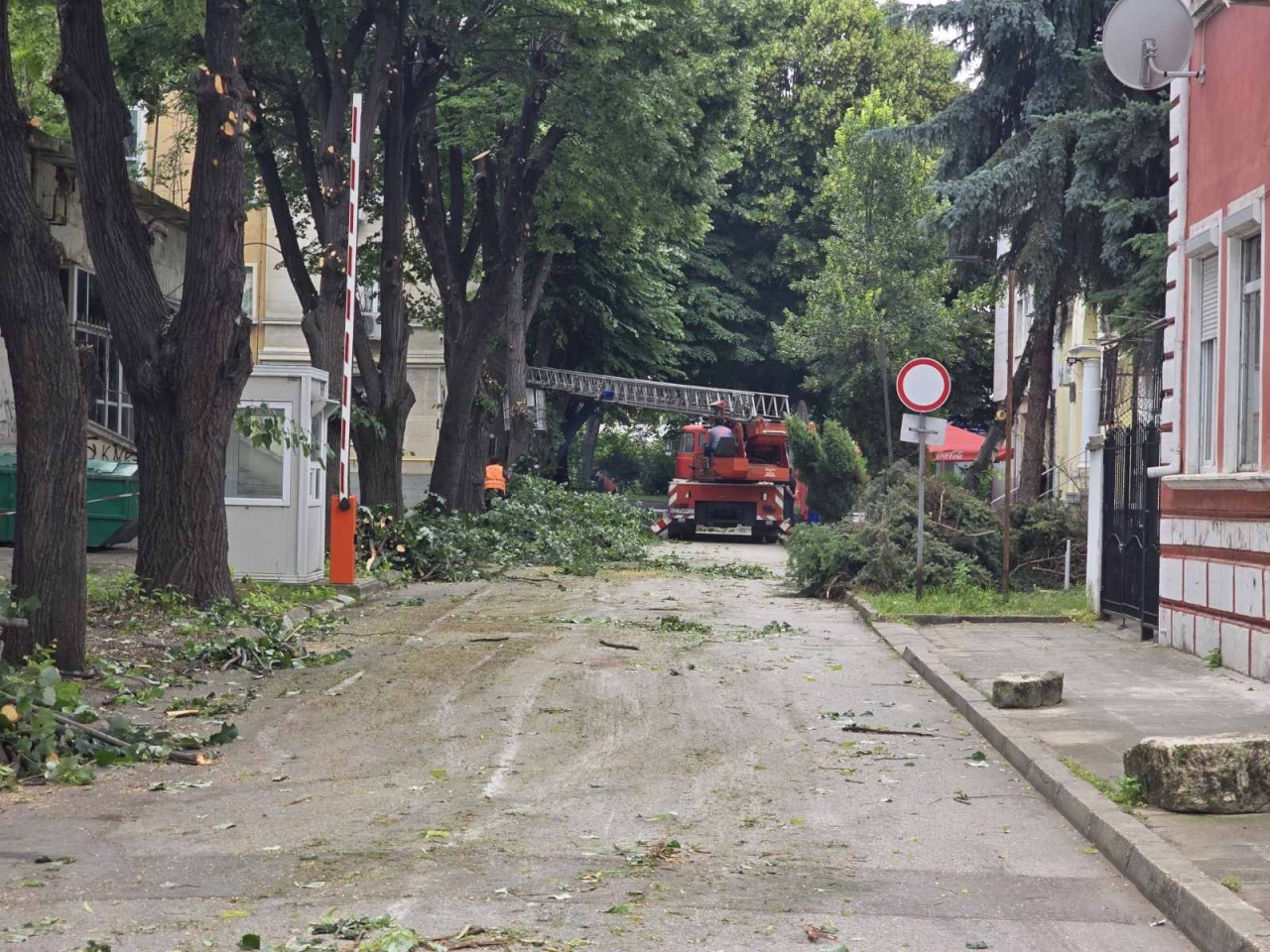 В рамките на дейността по почистване са отрязани множеството надвисна клони от близките дървета, които закриваха както самата улица, така и будката с бариерата, преграждаща улицата в центъра на града в близост до съдебните структури.