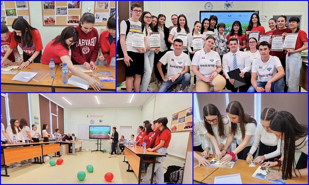 На 29 май 2024г. в ПГСУАУ "Атанас Буров" се проведе междуучилищна дейност – състезание "Аз обичам България" по проект BG05SFPR001-1.001-0001 "УСПЕХ ЗА ТЕБ", финансиран от Програма "Образование" 2021-2027, съфинансирана от Европейския съюз. Състезанието бе организирано от участниците в клуб "Аз обичам България" при ПГСУАУ "Атанас Буров" с ръководител г-ж Елена Къркова, преподавател по история и цивилизации. В него взеха участие и учениците от клуб "Мисля и действам" от седмите класове на ОУ "Иван Вазов" с ръководител г-жа Николинка Данчева – зам. директор. Двата отбора включваха по трима участници от десетите класове и по двама от седмите класове на двете училища.