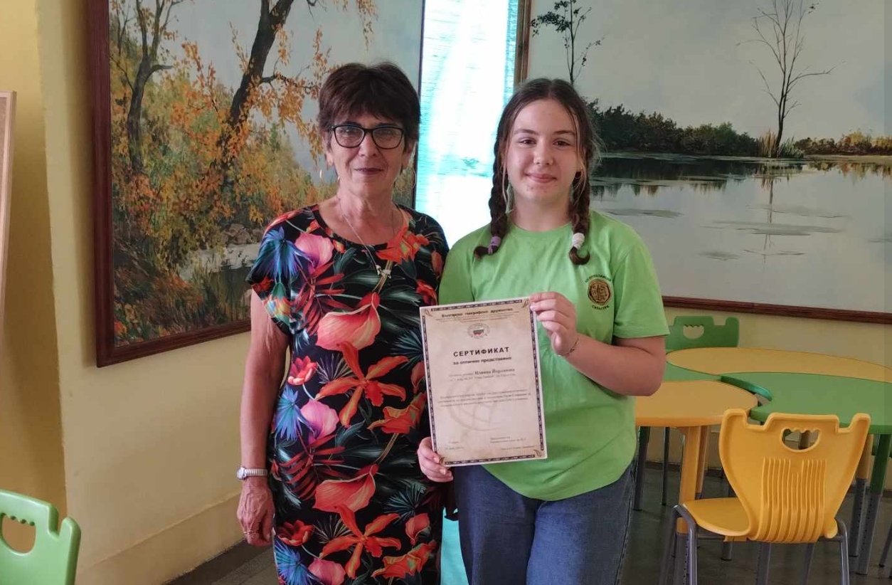 От ОУ "Отец Паисий" с огромна радост съобщиха, че тяхната ученичка Илияна Йорданова от 7Б клас е спечелила Национален сертификат от Българското географско дружество за високи резултати в олимпиадите по география!