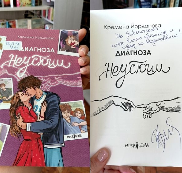 Особена благодарност библиотеката изразява към Кремена Йорданова за щедрото дарение и милото послание, което придружава книгата. Този жест на добрина и подкрепа към културната институция е високо оценен и ще допринесе за обогатяването на библиотечния фонд и радостта на читателите.