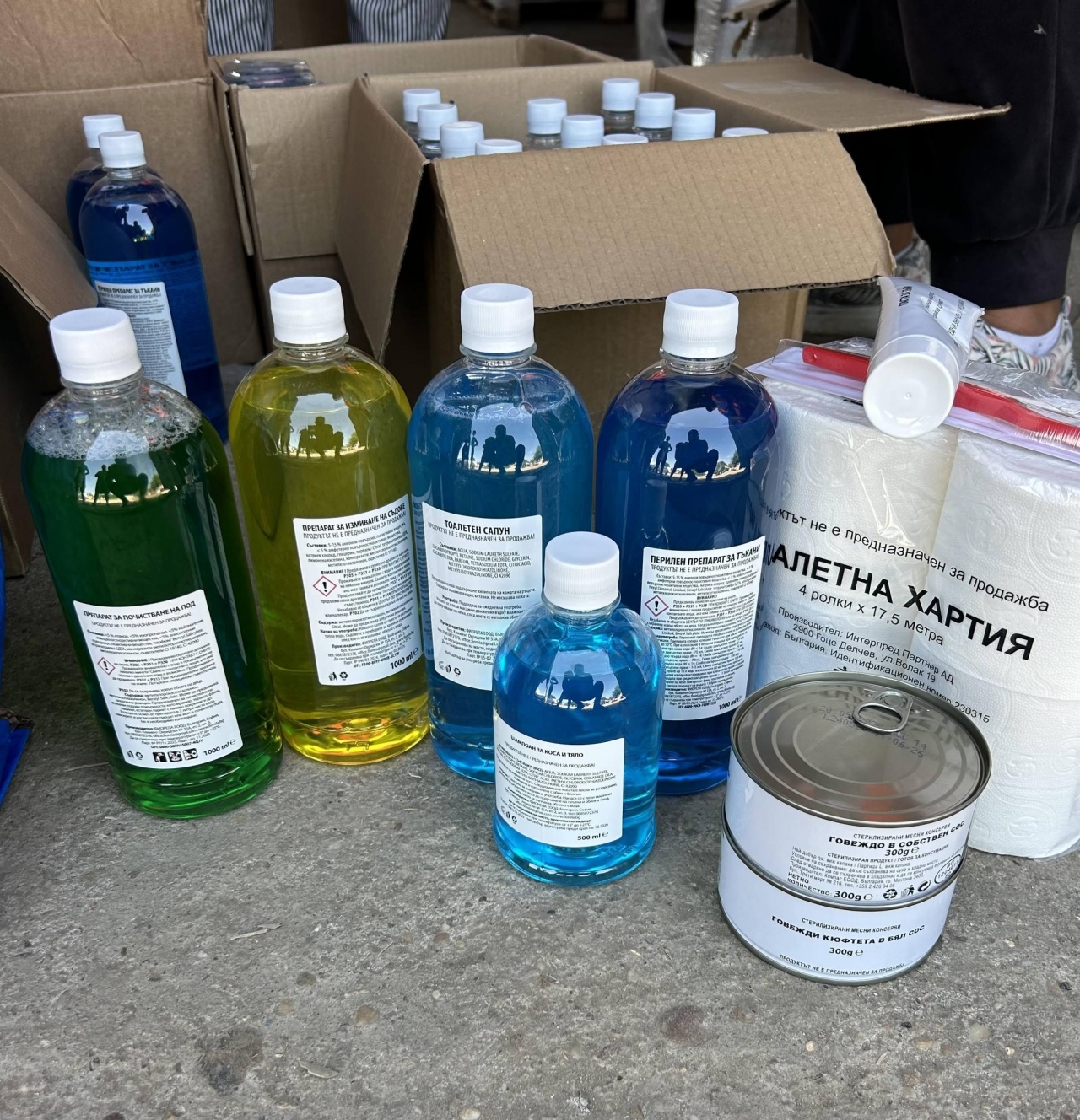 📦Пакетите съдържат 2 вида месни консерви (говеждо месо и говежди кюфтета) и хигиенни продукти: тоалетен сапун, шампоан, паста за зъби, четка за зъби, тоалетна хартия, перилен препарат, препарат за под, препарат за съдове.Продуктите са закупени от АСП.