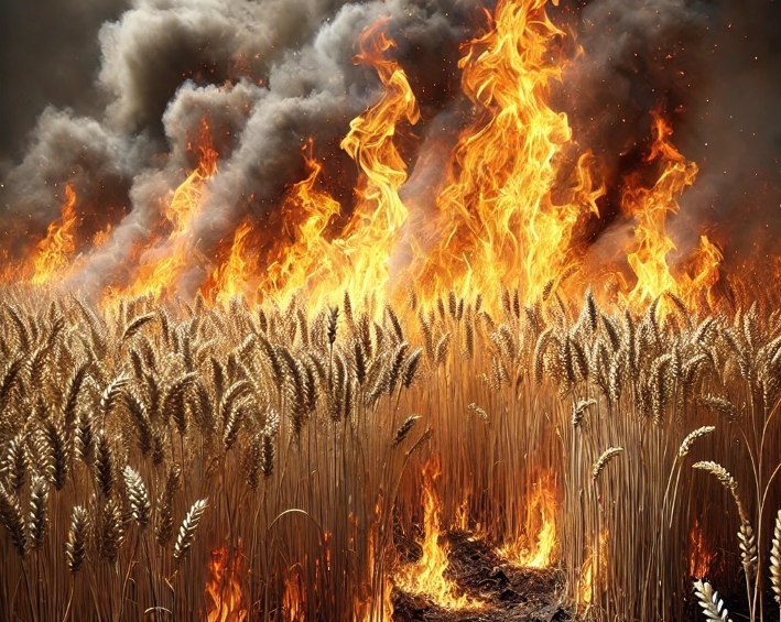 Огнен ад до Осен: Унищожени са 230 дка пшеница и 80 декара гора