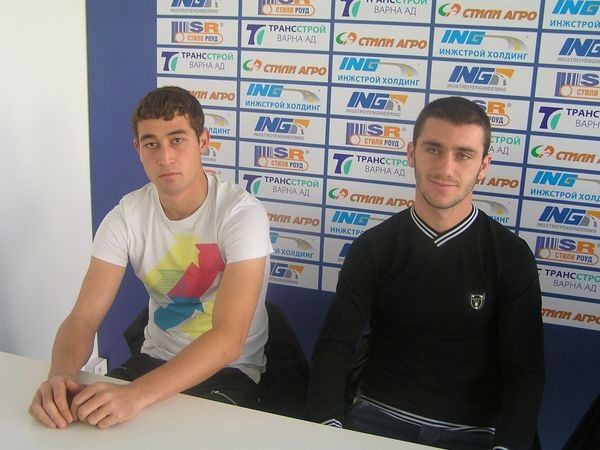 Последните двама привлечени футболисти, които ще играят напролет в тима на "Спартак 1918", бяха представени в новия пресцентър на "соколите". Това са разтрогналите по взаимно съгласие с тима на "Доростол" (Силистра) Ерхан Мехмед (вляво на снимката) и Мирослав Начев. Мехмед е нападател, а Начев е ляв външен защитник. Интересното е, че и двамата са имали други предложения, където да продължат кариерата си, но без да умуват много, са приели офертата на "Спартак 1918".