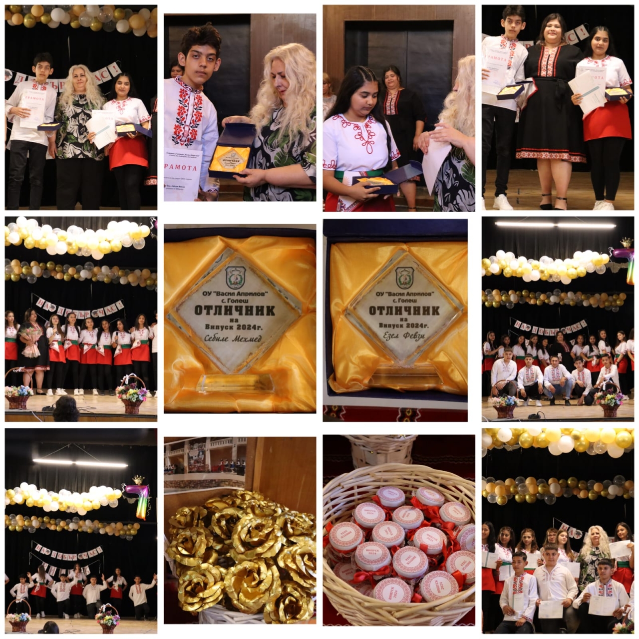 Най-вълнуващият за учениците момент настъпи, когато Директорът, г-жа Елена Янкова, започна да раздава свидетелствата им за основно образование. За първа година отличниците на випуска Езел Февзи и Себиле Мехмед получиха плакет за постигнатите отлични резултати.