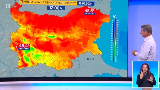 Температурата на земята в петък (12 юли), измерена по обяд в Силистра, е достигнала 48.8 градуса, най-висока за България.
