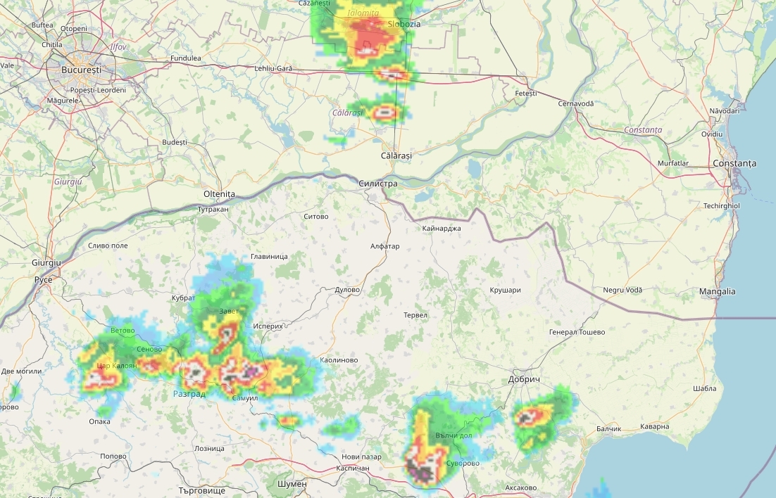 Две локални бури се образуваха на север и юг от Силистра, движейки се в посока югоизток и заобикаляйки града.
