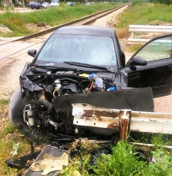 Лек автомобил "Ауди А3", управляван от 64-годишен водач, преминава през прелеза при мигаща червена светлина на семафора, при което е ударен от мотрисен влак, движещ се по линията Силистра – София. Водачът и пътуващата с него 39-годишна жена не са пострадали.