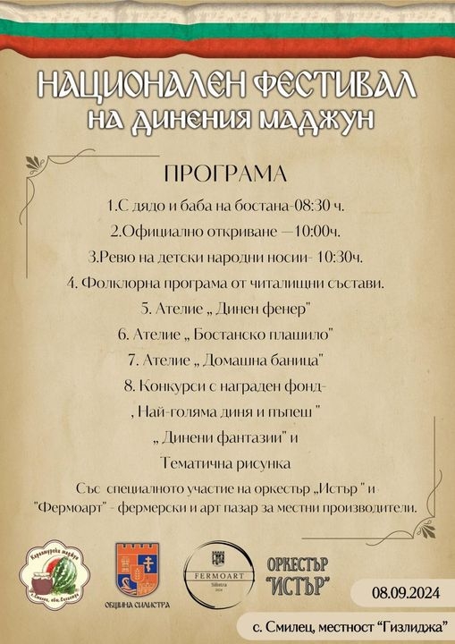 Националният фестивал на динения маджун обещава да бъде истинско празненство на българската традиция и култура. Всички жители и гости на селото са поканени да се присъединят към празника и да създадат незабравими спомени заедно.