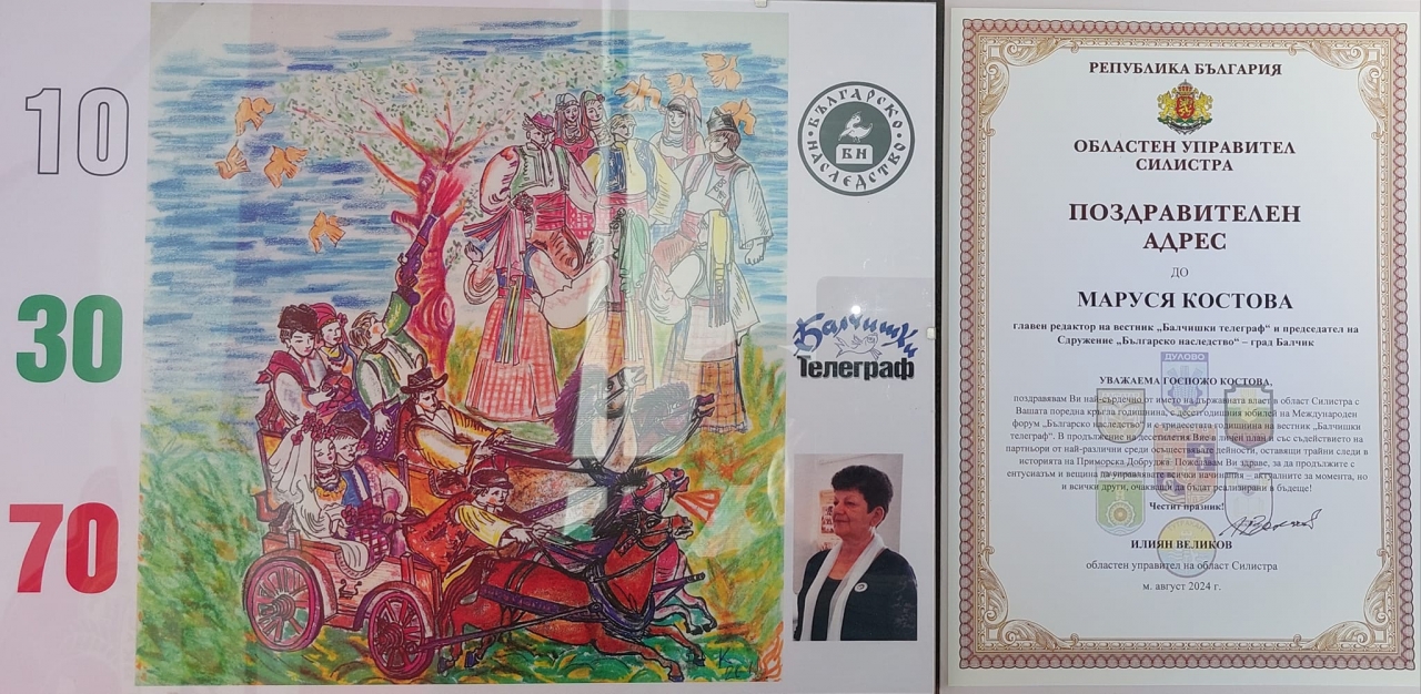 Сред специалните моменти на вечерта беше награждаването на Маруся Костова, председател на Сдружение "Българско наследство" и главен редактор на вестник "Балчишки телеграф", който отбелязва своята 30-годишнина. Костова получи множество поздравления и признания за своята работа и принос към българското културно наследство.