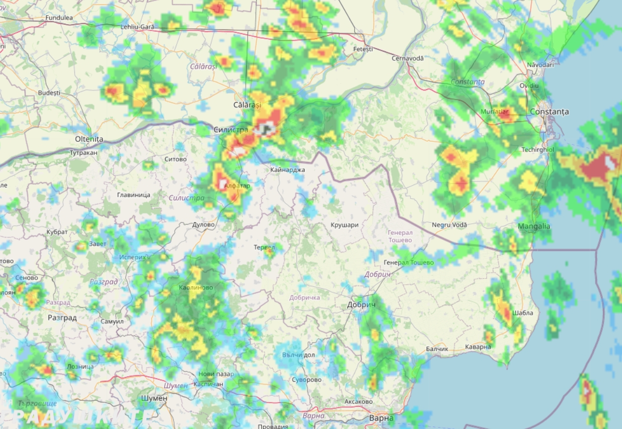 Снимка: Метеорологичната радарна информация в реално време от радара в гр. Шумен.