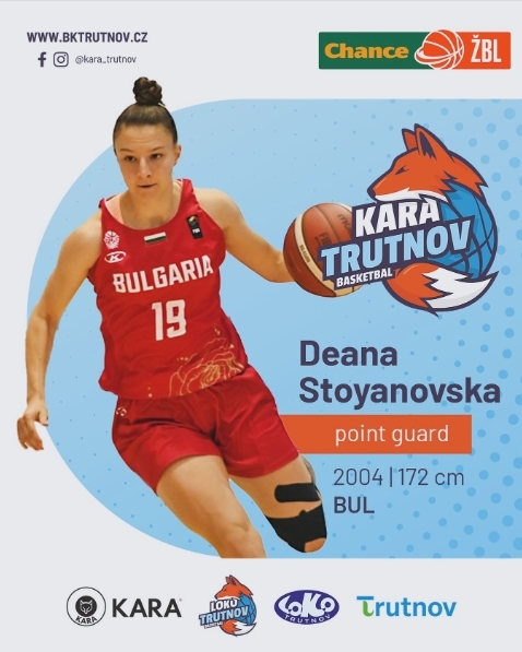 Силистренската баскетболистка Деана Стояновска направи гигантска крачка в кариерата си, като за първи път ще играе в чужбина. Националката до 20 години ще се присъедини към чешкия елитен отбор КАРА Трутнов, съобщиха официално от клуба. Стояновска се договори с тима за предстоящия сезон.