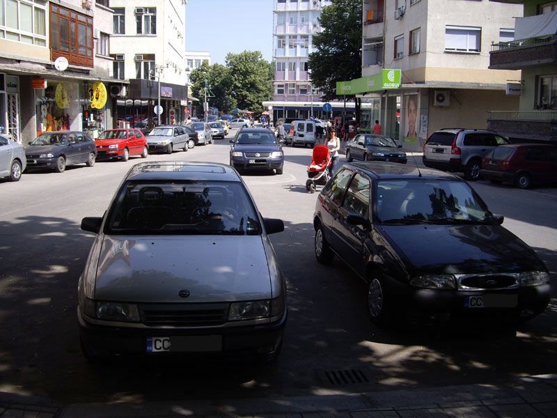 В истински ад за водачи на автомобили и пешеходци се превръща центъра на Силистра през работните часове на деня. Всеки паркира където поиска, а пешеходците са принудени да слаломират /да заобикалят - за коментарите отдолу :)/ между морето от МПС-та. Както се вижда от снимката всички нарушат правилата. Липсата на представители на КАТ в центъра на града е натрапчиво. "Синята зона" която трябваше да стартира днес в нашия град е само мираж. Затова питаме – докато това стане факт, кой ще осигурява безопасността и ще следи за спазването на законите в центъра на Силистра.